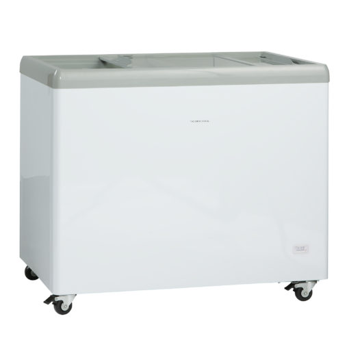Liukuvat, kaarevat lasikannet integroiduilla kahvoilla vähentävät kylmähukkaa ja tekevät pakastimen käytöstä vaivatonta. Neljä pyörää (joista kaksi jarrullisia) takaavat helpon siirrettävyyden ja ylläpidon. Selkeä valkoinen muotoilu sopii siististi kaikenlaisiin myyntiympäristöihin.
