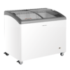 Pakastimessa on kaarevat liukulasikannet integroiduilla kahvoilla, mikä helpottaa käyttöä ja vähentää kylmähukkaa. Kansi liukuu kevyesti ja tarjoaa hyvän näkyvyyden tuotteisiin. Neljä pyörää, joista kaksi jarrullisia, tekevät laitteesta helposti siirrettävän ja käytännöllisen myös täytenä.