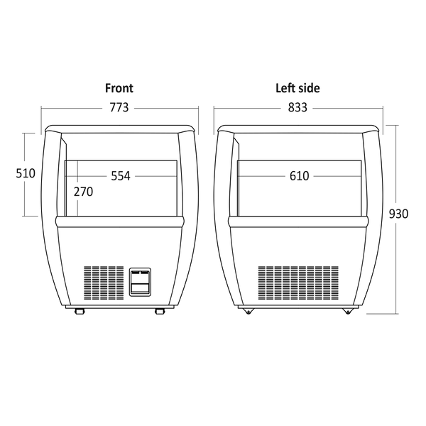 930 x 773 x 833 mm (KxLxS)