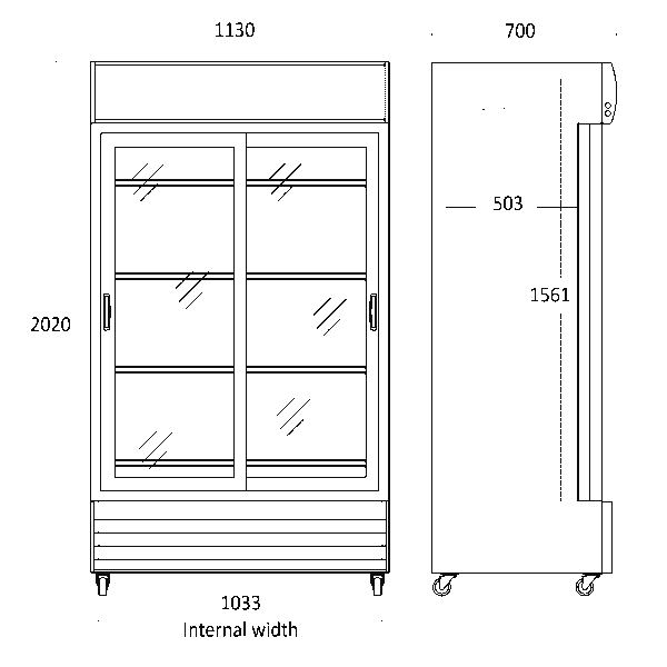 • Ulkomitat (K × L × S): 2023 × 1130 × 700 mm