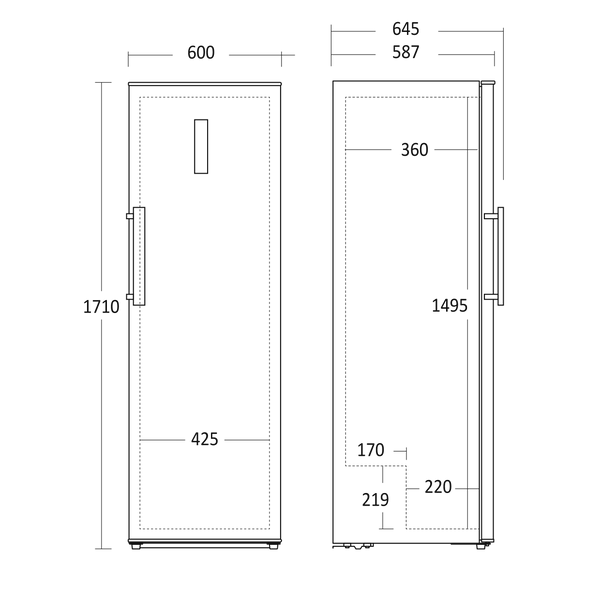 Staattisella jäähdytyksellä varustettu pakastin on suunniteltu joustavaan sijoitteluun. Ovikätisyys on vaihdettavissa, ja säädettävät jalat takaavat vakaan asennuksen erilaisille lattioille.