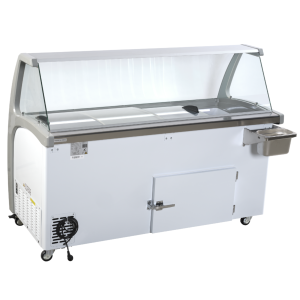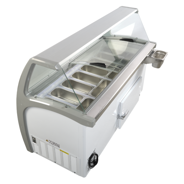 Ihanteellinen jäätelön, sorbettien ja muiden pakastettujen tuotteiden säilytykseen ja tarjoiluun.