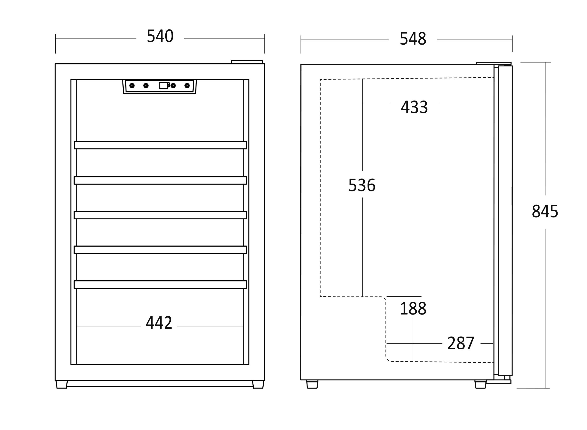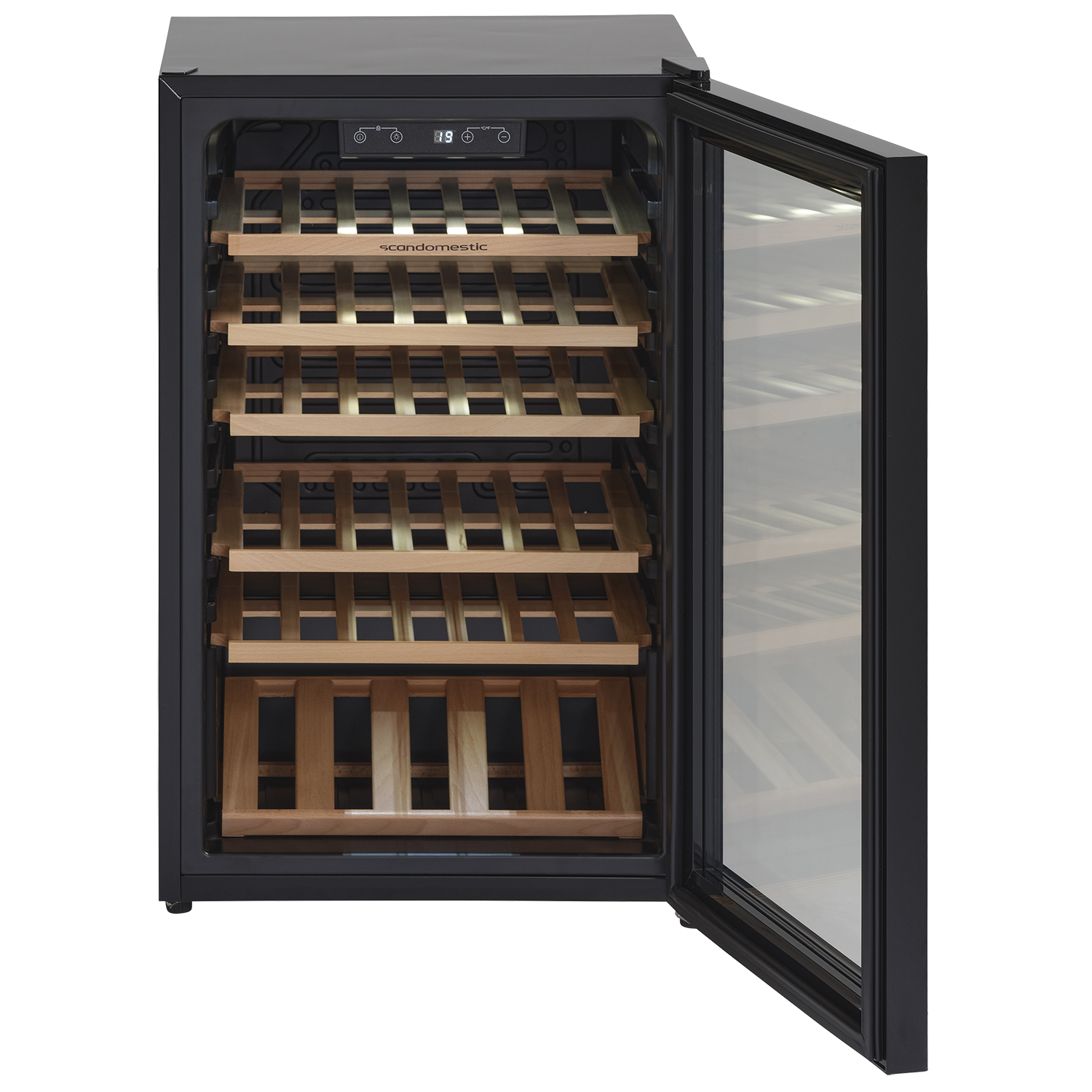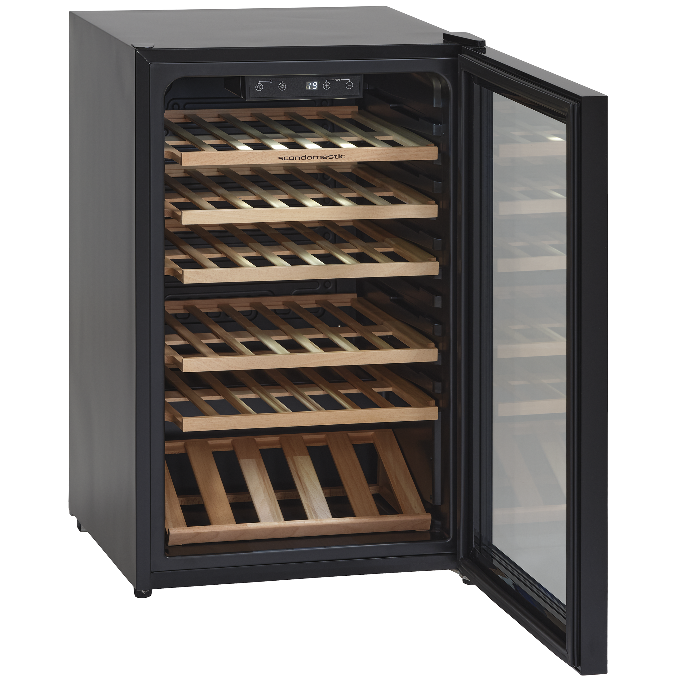 Scandomestic SV45B on vapaasti sijoitettava, yksivyöhykkeinen viinikaappi, joka on suunniteltu viinien oikeaoppiseen säilytykseen ja näyttävään esillepanoon. Kaappiin mahtuu 45 viinipulloa kuudelle beechwood-puuhyllylle, joista 5 on ulosvedettäviä ja 1 esittelyhylly, mikä helpottaa käyttöä ja korostaa pulloja tyylikkäästi.