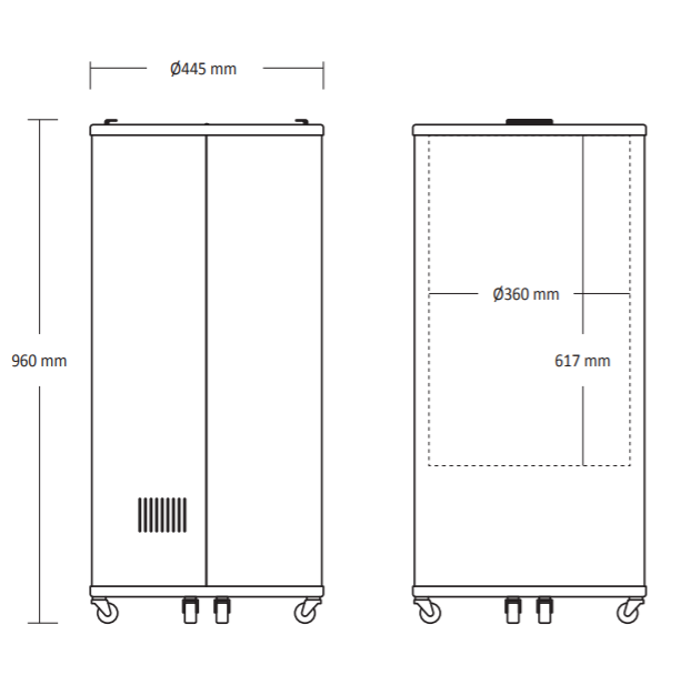Pyöreä tynnyrimuotoilu tekee kaapista erottuvan ja helposti sijoitettavan ilman, että se vie paljon lattiatilaa. Musta ulkonäkö antaa hillityn ja ammattimaisen ilmeen, ja kaappi soveltuu sekä sisä- että ulkokäyttöön suojaisissa olosuhteissa.