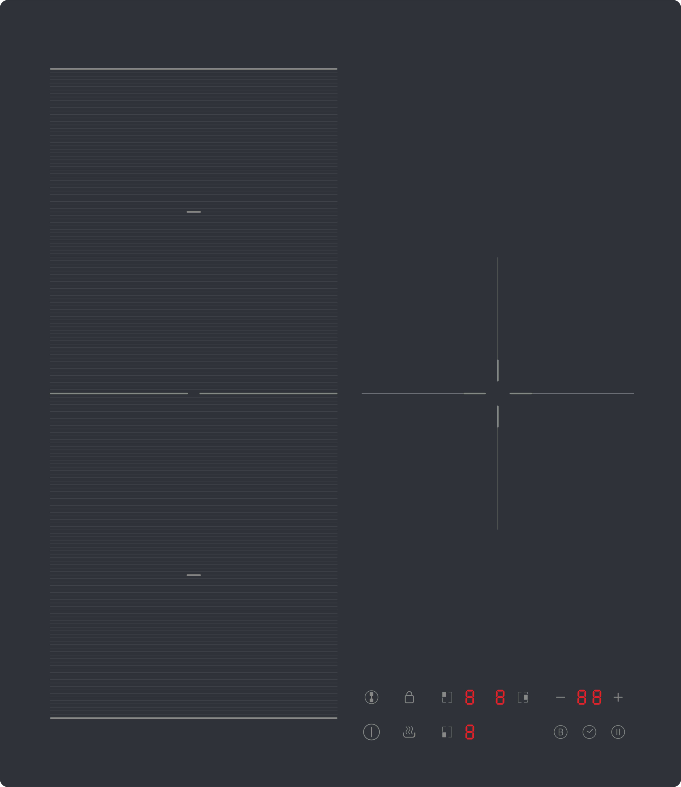 Control both cooking areas simultaneously via bridge function, merging them into one large area which allows larger/oval baking containers be used conveniently.