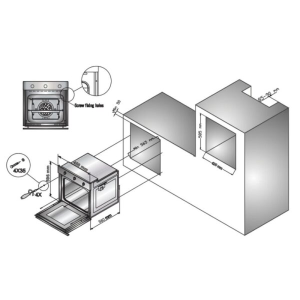 Asennusmitat: 595 × 560 × 560 mm