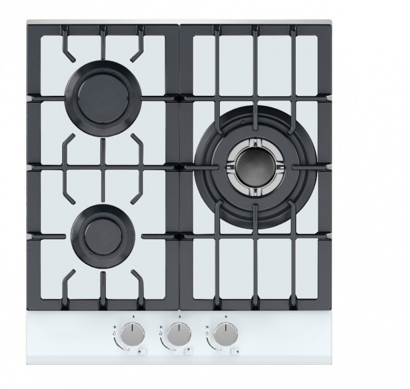 45cm wide 3-burner gas hob Schlosser with white glass ceramic surface