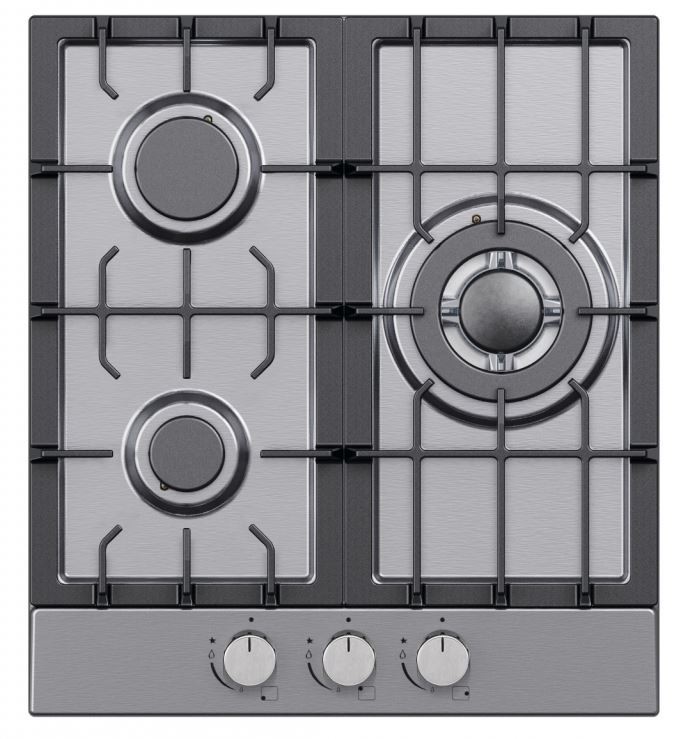 45cm wide 3-burner gas hob Schlosser with stainless steel surface