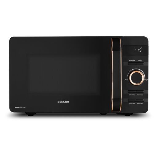 Sencor SMW5320BK on elegantti mikroaaltouuni, jossa yhdistyvät näyttävä design ja käytännöllinen arjen toimivuus. Kiiltävä musta lasietupaneeli ja kuparinväriset yksityiskohdat tekevät laitteesta erottuvan valinnan keittiöön, jossa arvostetaan ulkonäköä yhtä paljon kuin helppokäyttöisyyttä.