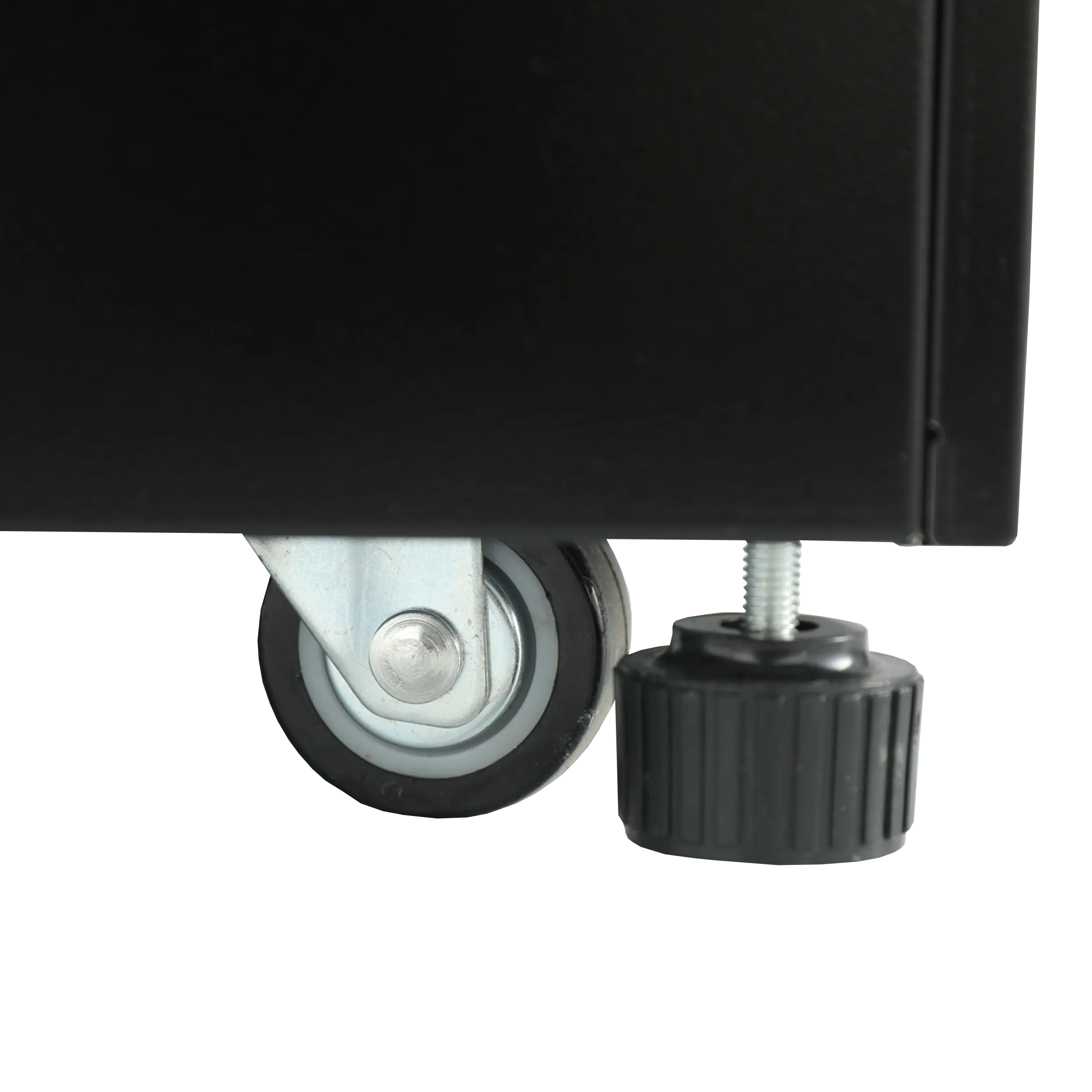 Vitriini on varustettu pyörillä, joiden ansiosta sitä voidaan siirtää helposti esimerkiksi myymälän sisällä. Tämä helpottaa sekä sijoittelua että siivousta.