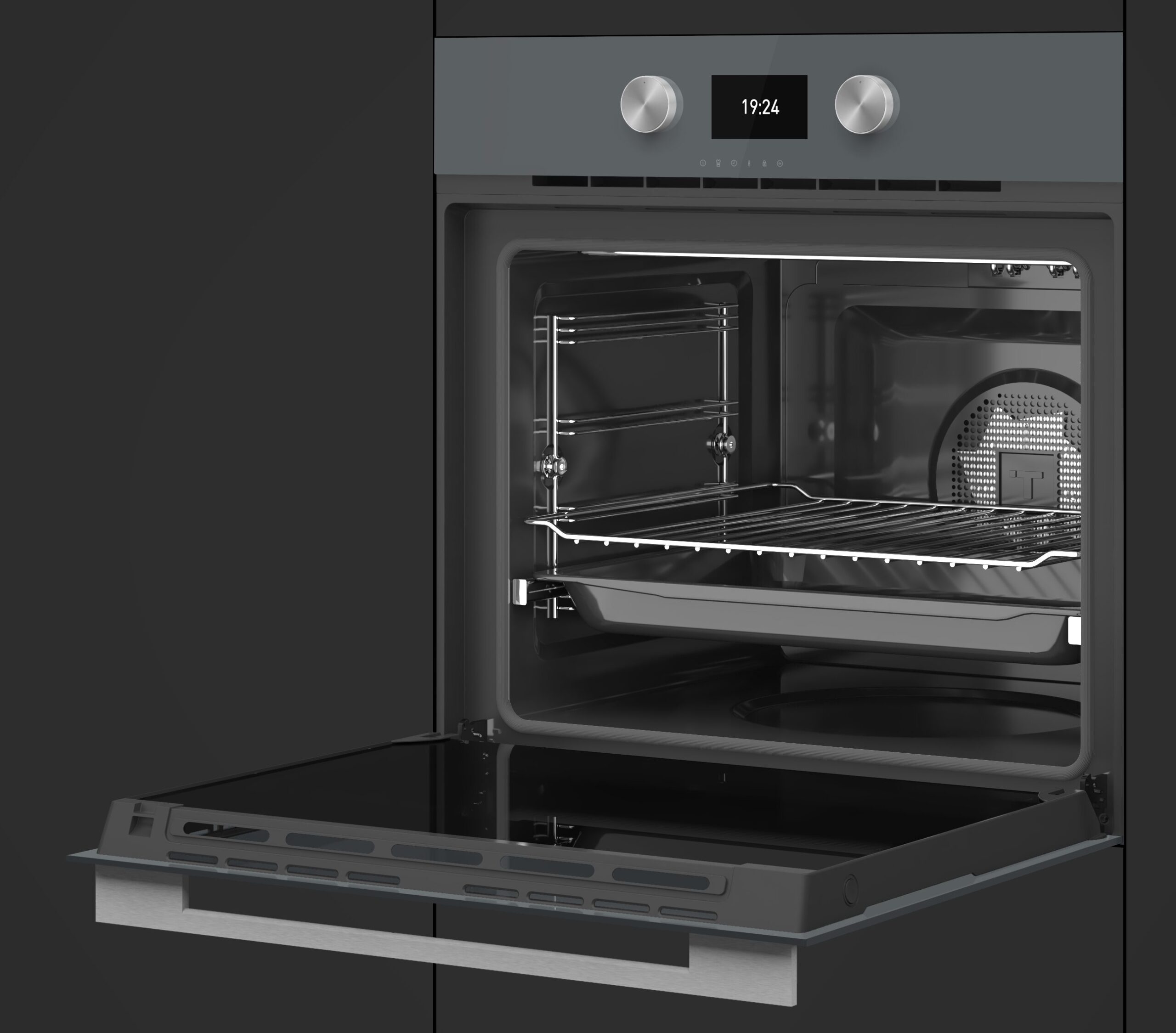 Selkeä TFT-värinäyttö tekee ohjauksesta intuitiivista. SoftClose-ovi sulkeutuu pehmeästi ja äänettömästi, ja teleskooppikiskot mahdollistavat turvallisen ja helpon pellin ulosvedon. Lapsilukko lisää turvallisuutta perhekäytössä.