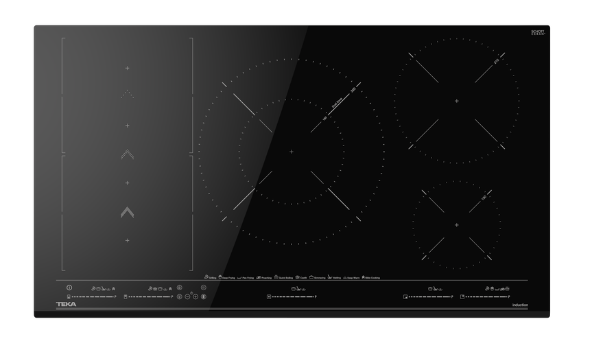 5 cooking zones: 1 zone Ø 320/180 mm, 2 zones Ø 228 x 200 mm and 1 zone Ø 215 mm