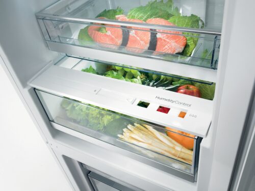 CrispZone-vihanneslaatikon tilavuus on 36 litraa, tarjoten runsaasti tilaa hedelmien ja vihannesten säilytykseen. Säädettävän kosteuden ansiosta laatikon olosuhteet voidaan mukauttaa eri tuotteille, jotta ne säilyvät raikkaina mahdollisimman pitkään.