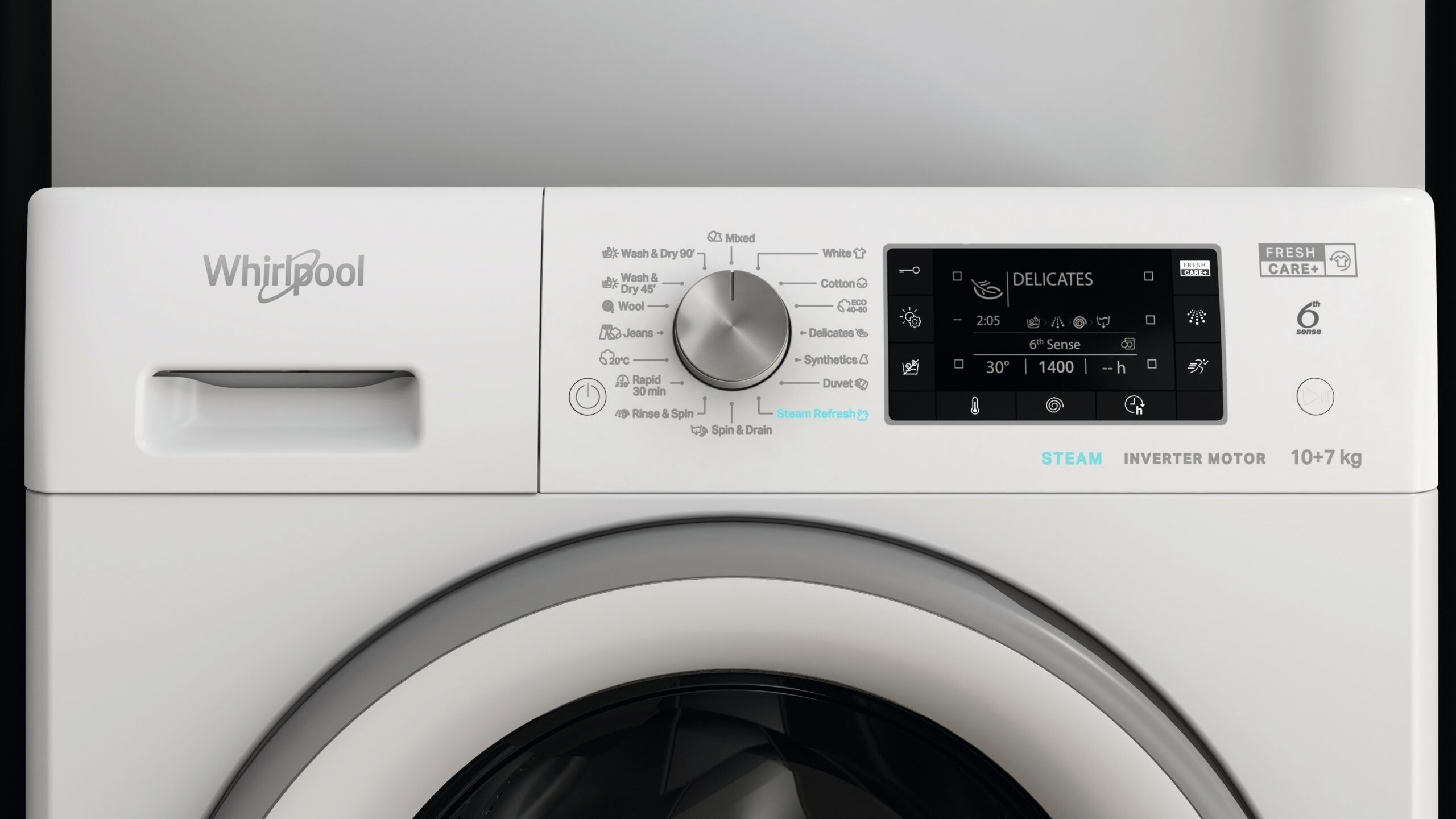 Whirlpoolin 6th Sense -teknologia tunnistaa pyykin määrän ja tyypin sekä säätää automaattisesti pesu- ja kuivausparametrit. Monisuuntainen lämmin ilmavirta kuivaa pyykin tasaisesti ja hellävaraisesti, vähentäen kulumista ja energiankulutusta.