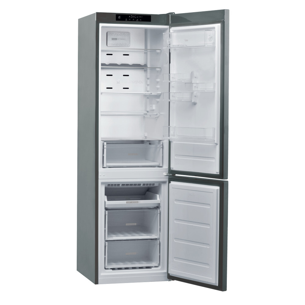 Whirlpool W9M951SOX on korkeatasoinen Dual No Frost -jääkaappipakastin vaativalle käyttäjälle, joka arvostaa elintarvikkeiden pitkää säilyvyyttä, energiatehokkuutta ja huoliteltua muotoilua. Optinen inox-viimeistely ja sormenjälkiä hylkivä pinta tekevät laitteesta tyylikkään ja helppohoitoisen osan modernia keittiötä.
