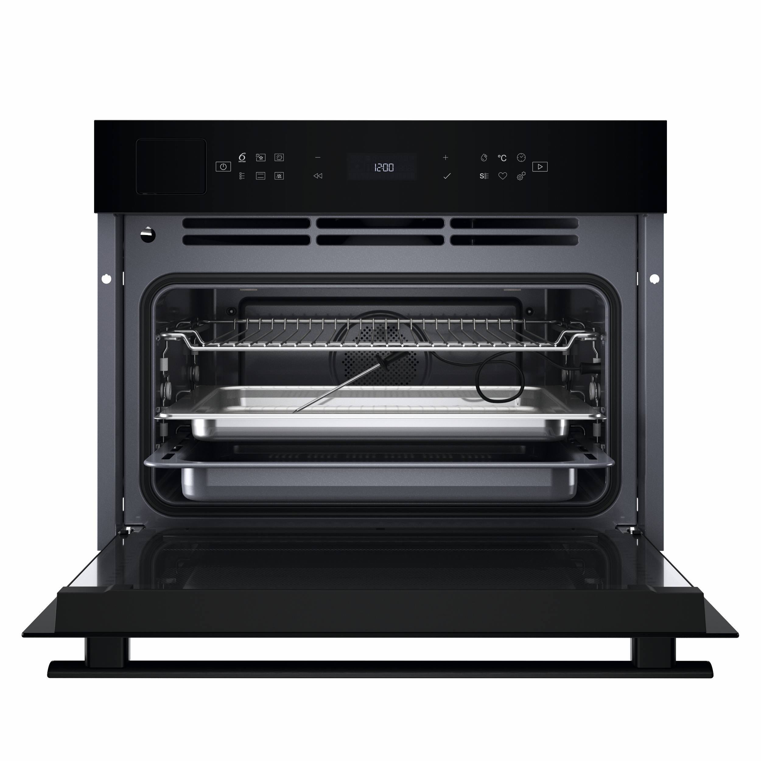 Meat Probe seuraa ja hallitsee lihan sisälämpötilaa itsenäisen johdon avulla. Uuni ilmoittaa, kun asetettu lämpötila saavutetaan, mikä takaa täydellisen kypsyysasteen ilman arvailua.