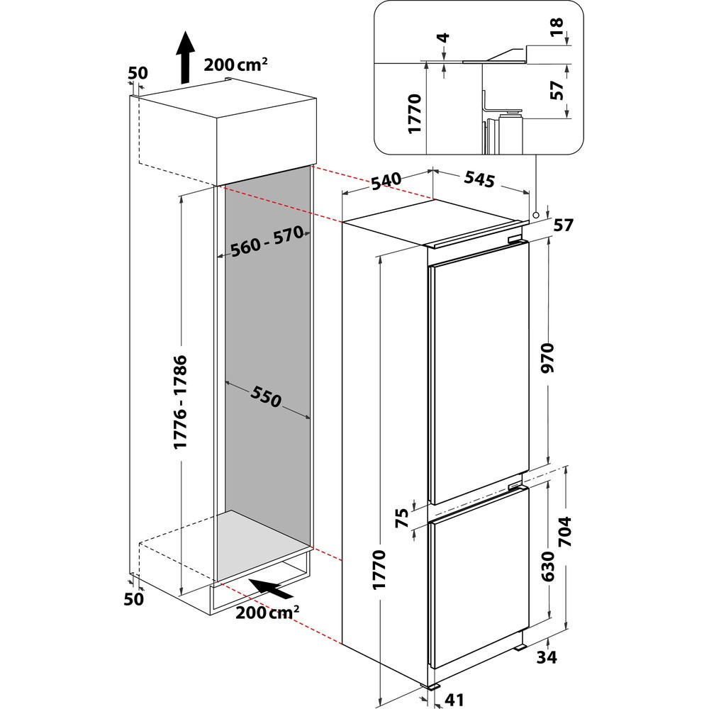 Total No Frost -tekniikka huolehtii jatkuvasta ilmankierrosta ja optimaalisesta kosteustasosta jääkaapin kaikissa osissa. Ylimääräinen kosteus poistetaan tehokkaasti, mikä estää jään ja huurteen muodostumisen sekä jääkaapissa että pakastimessa.