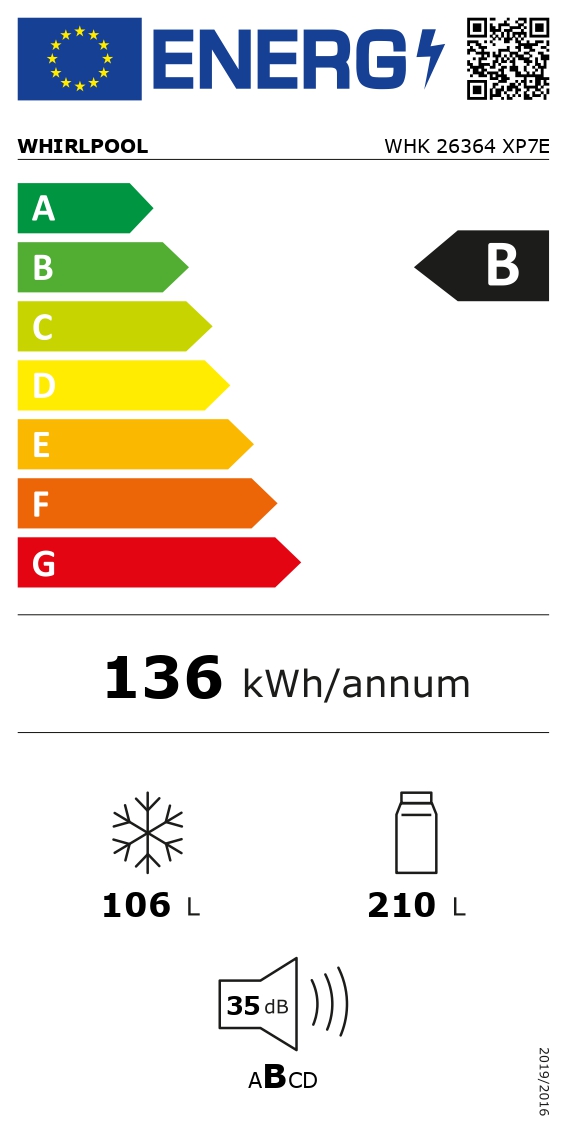 Whirlpool WHK26364XP7E on moderni ja täysin huurteeton jääkaappipakastin, joka tarjoaa edistyksellisen jäähdytysteknologian, tasaisen lämpötilan ja erinomaisen säilytysympäristön kaikille elintarvikkeille.