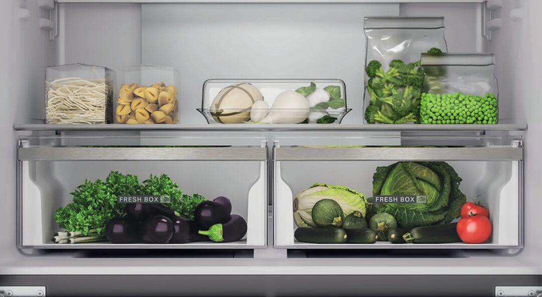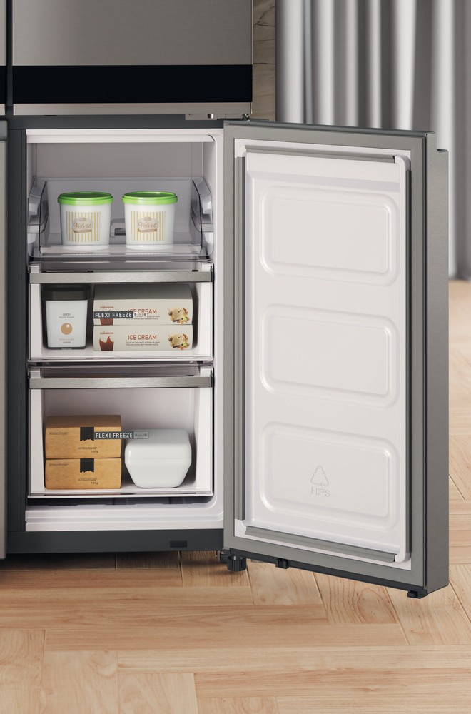 Selkeä ohjaus ja looginen sisärakenne tekevät käytöstä vaivatonta. Tilavat ovihyllyt, kestävät lasihyllyt ja suuret vetolaatikot tukevat sujuvaa arkea ja hyvää järjestystä.